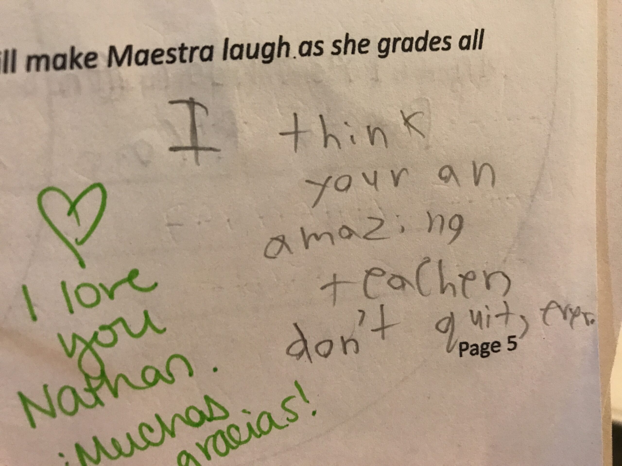 - The fact that this was written by a student who has only had ONE year of Spanish (only my class) and at the beginning of the year told me that he would never be able to speak Spanish, just warms my heart. I love that he says “Everyone knows Spanish”… how special is this!?